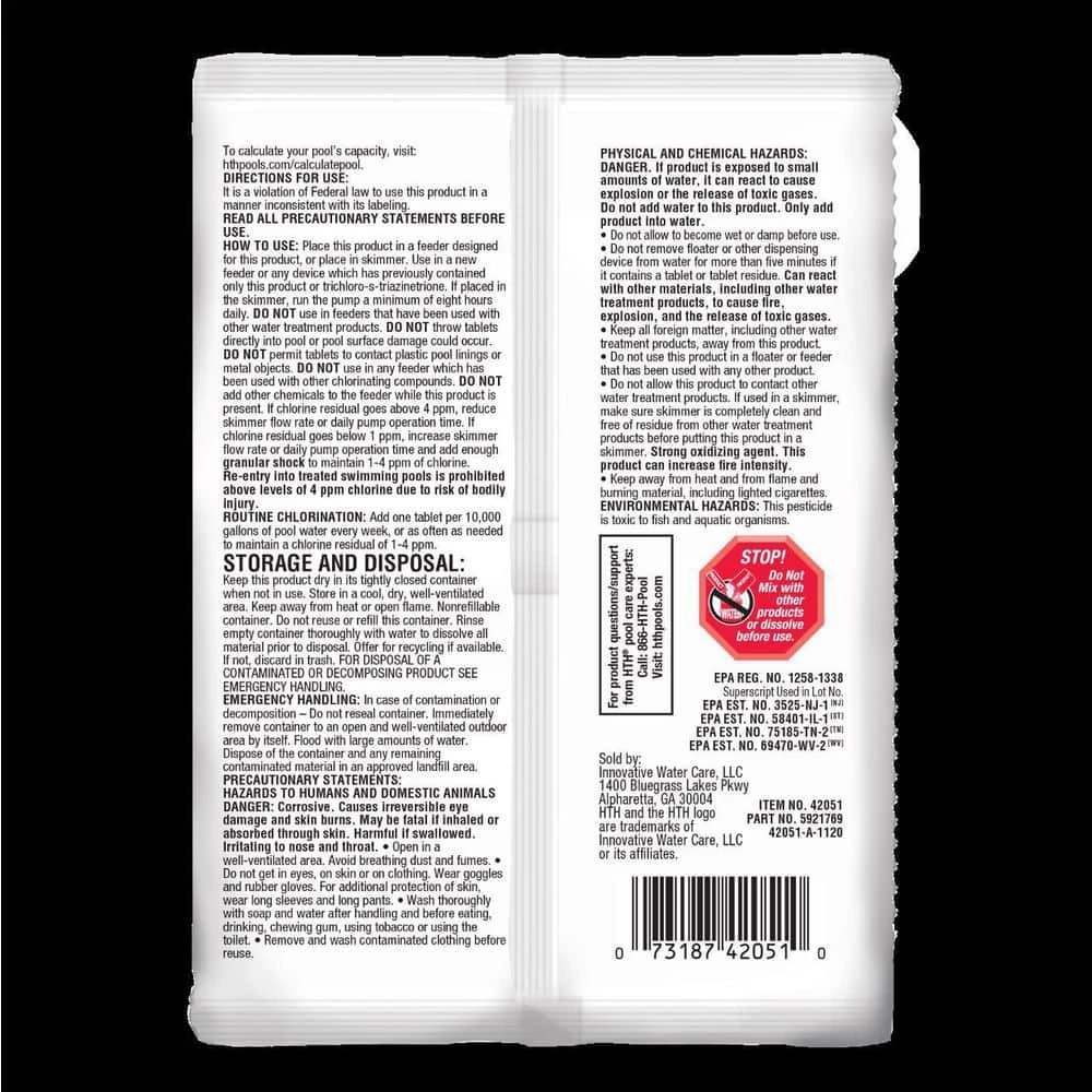 - HTH 6-in-1 chlorinating formula protects pool water, sanitizes, prevents stain and scale