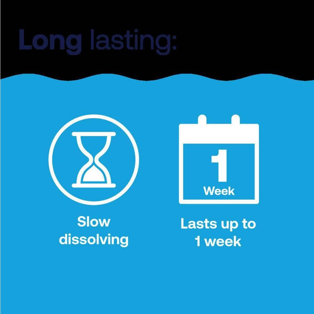 - 1 tablet treats 10,000 gallons for up to 1 week