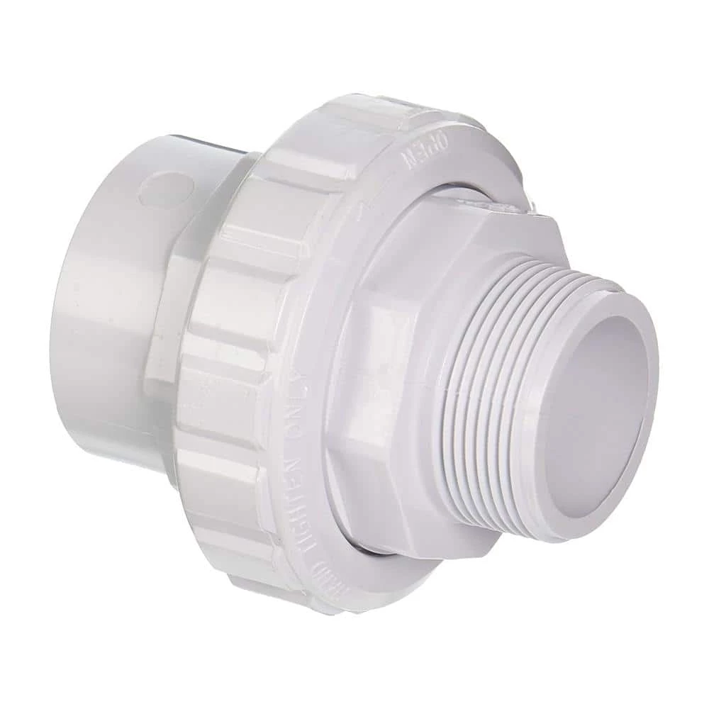 Hayward flush male/ female union is made of ABS plastic material. It has 1-1/2 in. FIP threaded fitting and a 1-1/2 in. hose barb. Available in white color.