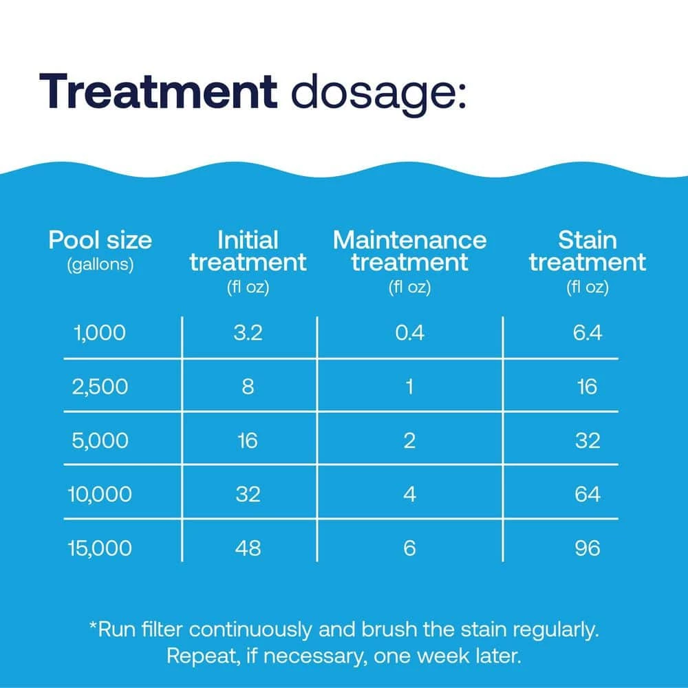 Prevent cloudy water and staining from dissolved metals with HTH metal and stain defense. Apply directly to the pool as part of your regular maintenance routine to prevent metal stains and scaling, remove fresh metal stains and prevent mineral deposits on equipment. HTH Metal & Stain Defense is great for all pool types including salt water pools and vinyl-lined swimming pools.