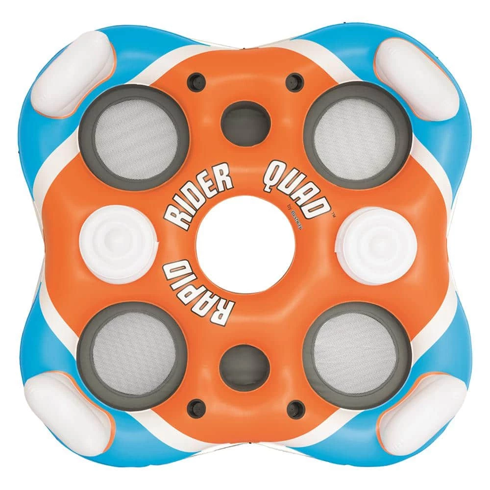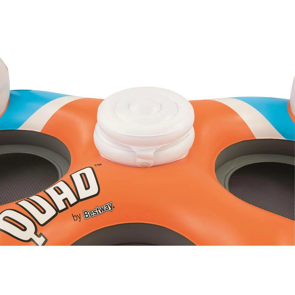 The Bestway Rapid Rider 4-Person Island is an excellent choice for floating in a river or lake with friends. A unique line of more grown up water sports items, a CoolerZ Rapid Rider X4 Island means relaxing fun in the sun and on the water with friends and family. Constructed using durable, high-gauge PVC material, the Rapid Rider X4 comfortably seats 4 people and features built-in backrests for additional support, a cool mesh bottom and 4 cup holders to keep your beverages within reach. The all-around grab rope makes it easy to mount from the water. It also includes 2 built-in coolers allowing you to take along frosty beverages and small snacks. It’s perfect for memorable summertime fun. Hit the river with 3 of your friends and tons of cool drinks on the Bestway Rapid Rider 4-Person Island. You’ll want to be in on the fun the CoolerZ Rapid Rider X4 Island guarantees.