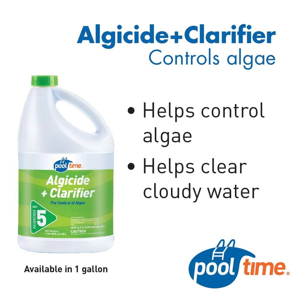 Pool Time Algicide + Clarifier is a 2 in 1 Algicide that controls algae and keeps water clear. This product is suitable for use in all pool types. Pool Time Algicide + Clarifier can be used in saltwater pools.