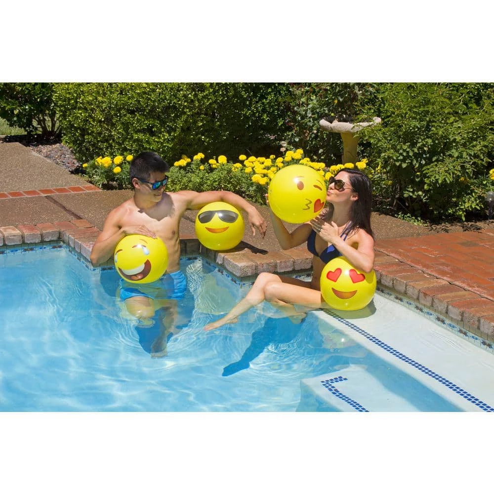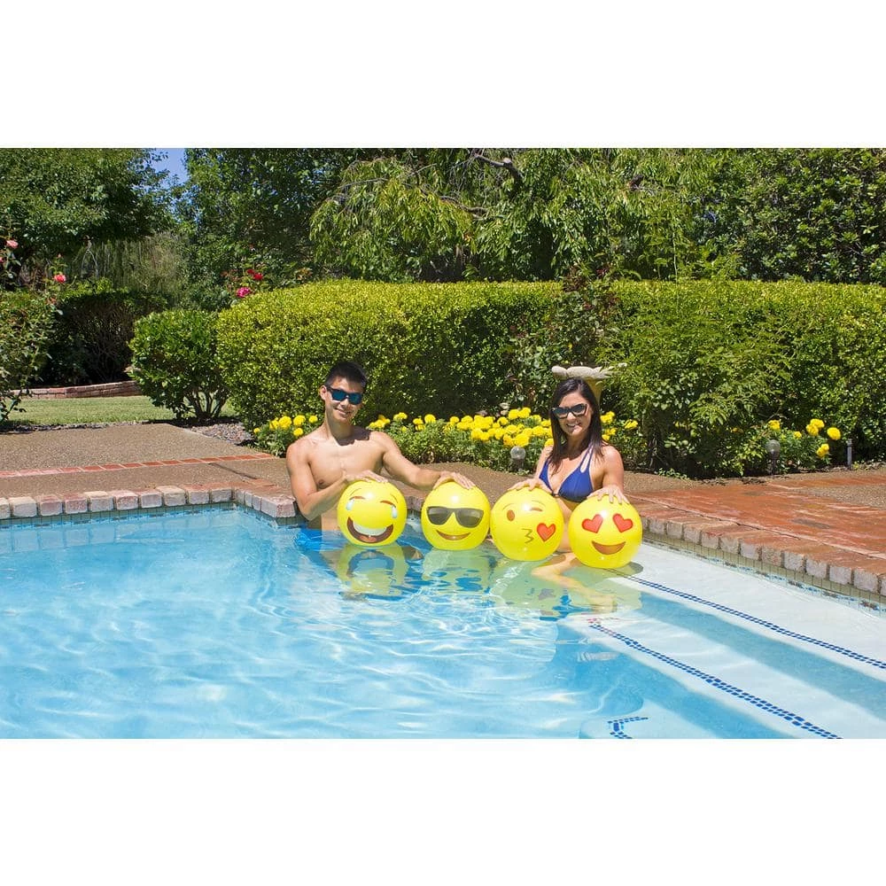 The perfect party pack of four 6-panel beach balls feature trend Emoji-style design. Poolmaster’s 16 in. Expressions Play Balls 4-Pack comes in Love, Laughter, Kiss, Sunglases expressions. Made of 6-Gauge vinyl they’re perfect for outdoor play. Recommended for ages 6 plus.
