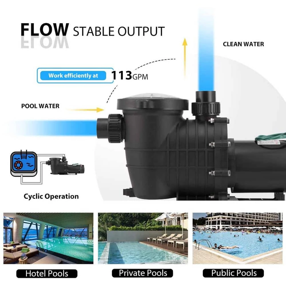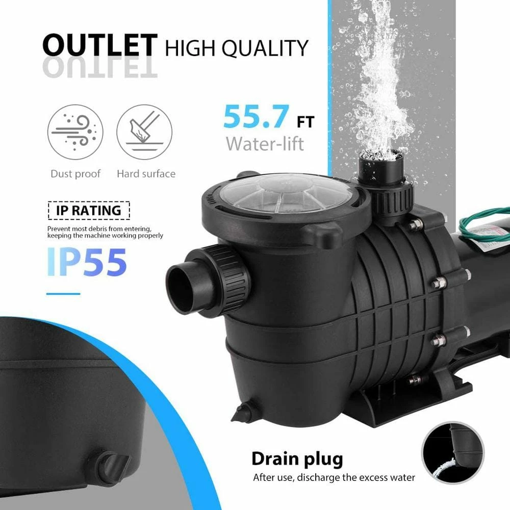 VIVOHOME swimming pool pump is made of a durable PP plastic shell and stainless motor that provides you with high-performance suction power and optimal flow. This pool pump runs very smoothly and is whisper quiet. Its airflow ventilation helps circulate water filtration and keeps your swimming pool clean and sanitary. Ideal for above-ground pools and spas in all types and sizes.