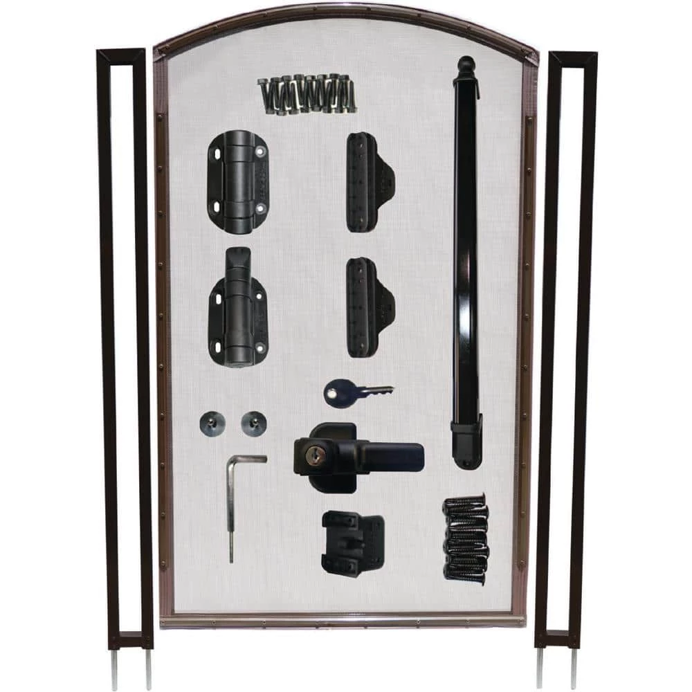 An integral part of the Pool Fence DIY pool safety system, this kit features a Brown self-closing, self-latching arched-top gate that will help make your backyard pool area a safer place for children. The Arched Pool Fence DIY Gate operates with sturdy double-truss uprights, ultra-reliable magnetic gate latch (designed specifically for securing gates around swimming pools) and self-closing gate hinges. The Pool Fence DIY Gate has a 4 ft. H (recommended by the Consumer Product Safety Commission) with a 2.5 ft. walk-through opening. Its aluminum, powder-coated square stock matches durable mesh fencing. It also features industrial-strength, UV-resistant Textilene PVC-coated nylon mesh, which has a strength rating of 387 lbs./sq. in. The gate has an adjustable swing for left- or right-handed opening. All hardware for concrete installation included, requires a rotary hammer drill with a standard 5/8 in. x 14 in. (minimum) masonry bit (not included). The optional Pool Fence DIY Drill Guide (sold separately) takes the guesswork out of drilling for proper in-ground installation. Pool Fence DIY offers 7-day-a-week installation support by phone and this gate is backed by a limited lifetime warranty. A family owned and operated company based in Delray Beach, FL, Life Saver has been has been keeping little feet on solid ground for over 25-years.