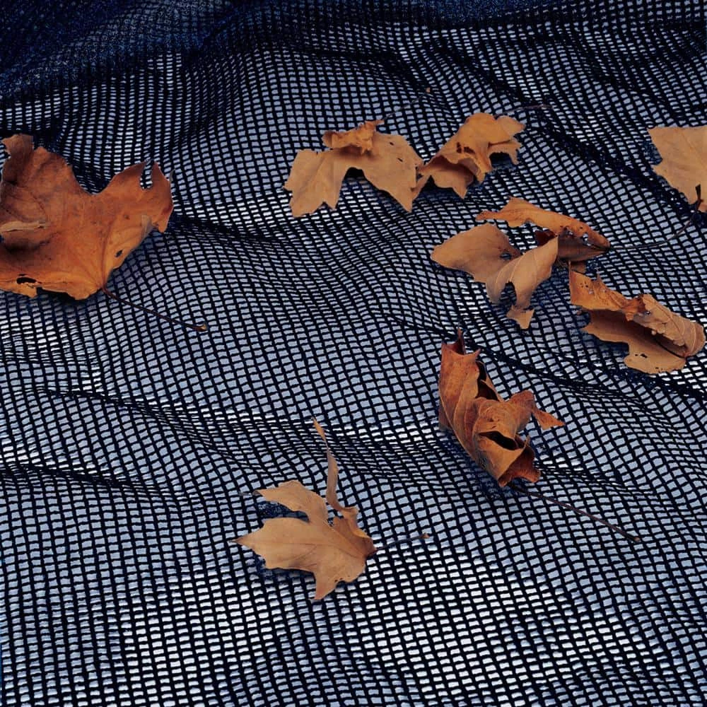 Install a Blue Wave leaf net over your winter cover this fall and make spring opening quick and easy. The leaf net’s tight mesh traps even the smallest leaves before they reach your winter cover. Other brands of leaf nets have larger mesh that allows small leaves to pass through to your winter cover and decompose in the spring. Simply lay the Blue Wave leaf net on top of your winter cover when you close your pool and remove it before the first snow. Your cover will be virtually leaf free and spring clean-up will be a snap, eliminates that messy swamp of decaying leaves. Blue Wave leaf nets are made from durable woven polyethylene and carry a 4-year warranty. In-ground leaf nets have an extra 4 ft. overlap and water tube loops for a secure fit over your in-ground winter cover. Black mesh fabric.
