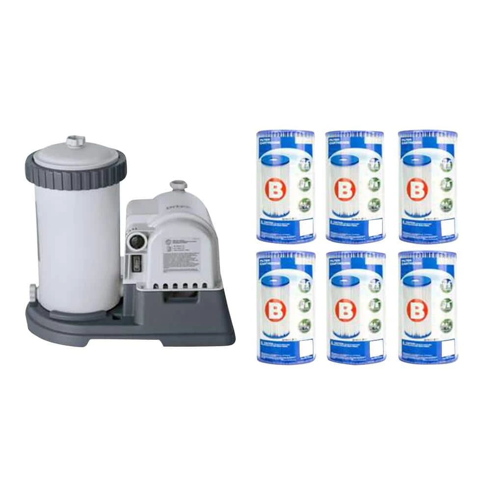 Keep your pool sparkling clean with the Intex Krystal Clear Pool Filter Pump. This pump features a built-in automatic timer to let you easily set 2-hour, 4-hour, 6-hour, 8-hour or 12-hour daily cleaning cycles. Its Type B Cartridge helps in filtering water up to 2,500 GPH. Moreover, it comes with a 1.5 in. DÃa hose that has 5 ft. L. This equipment is a perfect addition to your pool collection.