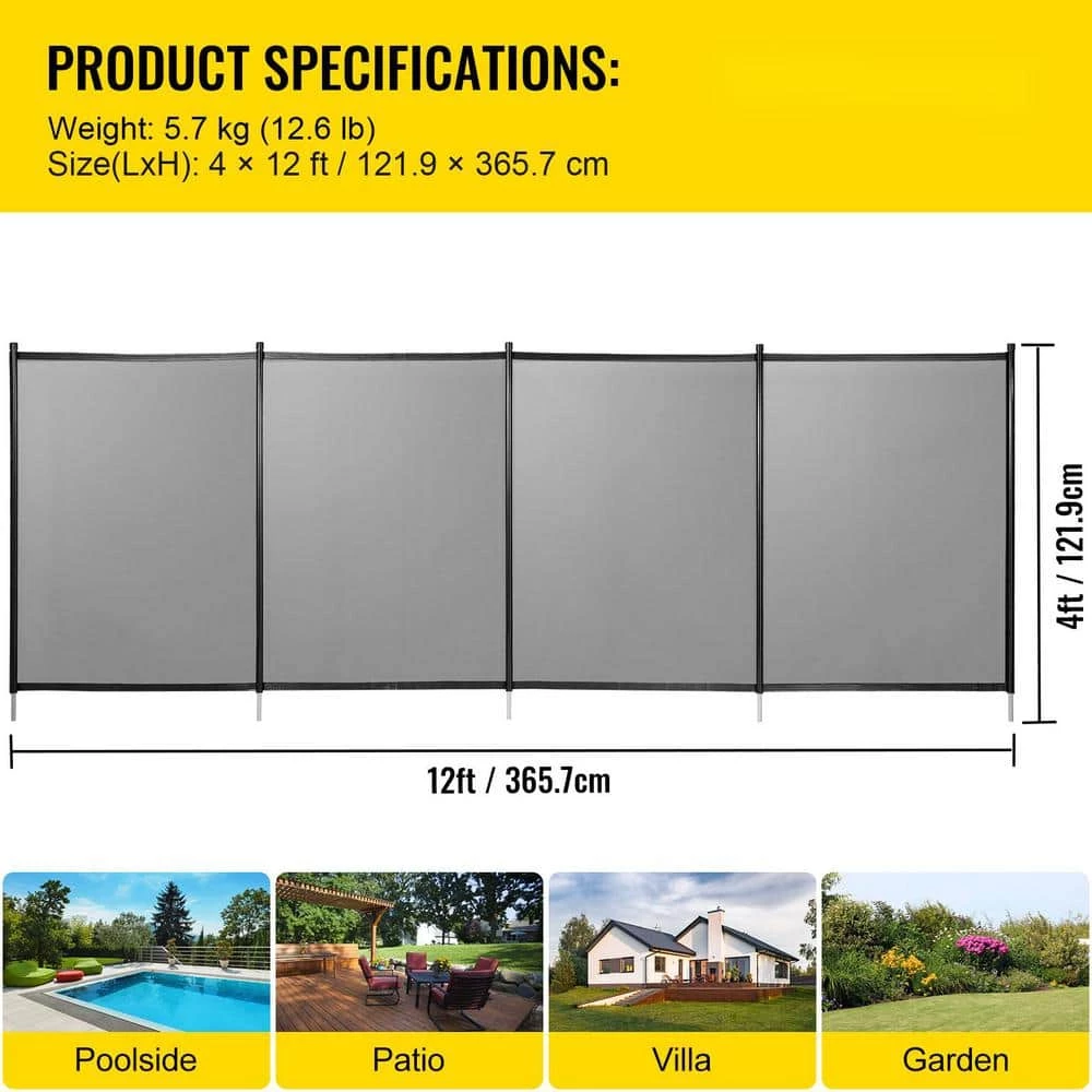- 4×12 ft Swimming Pool Fence: The pool privacy fence is 4ft high and 12ft long, 12 feet in total. Each Section can be easily shortened to fit your pool area perfectly. Parts can connect to surround your pool as many as you need, inhibiting people from going over the fence
