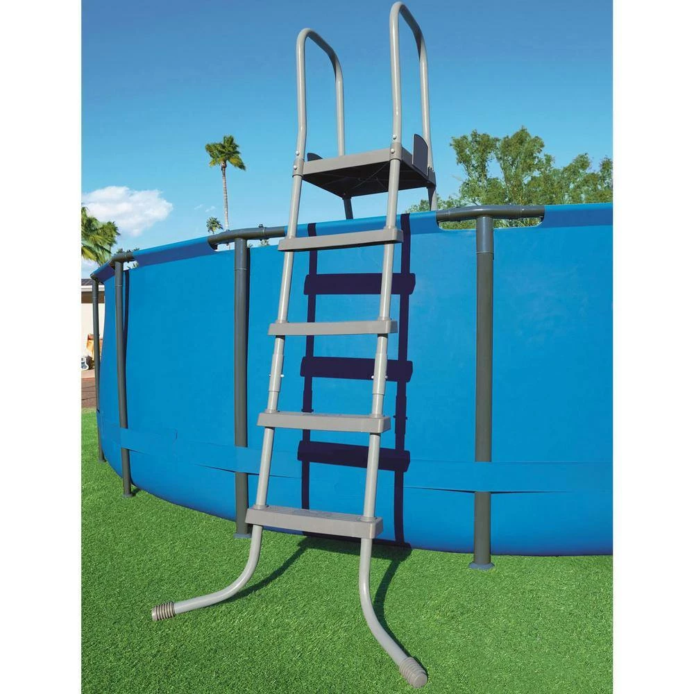 The Bestway 52 in. Pool Ladder is the best choice for your 52 in. tall above ground swimming pool. This ladder is a practical, as well as attractive, addition to your pool set. Made especially with Bestway Fast Set or Steel Pro Frame pools in mind, this pool ladder is made of a heavy-duty, rust-resistant galvanized metal frame and durable plastic steps. The steps have a slip-resistant surface designed to handle wet feet. Bestway pool ladders all comply with US safety standards, and the 52 in. Ladder is no exception. The arm rails make it safe and easy getting in or out of the pool. There’s also a barrier on 1 side that prevents children from swimming behind the ladder in the pool. Assembly is easy with this ladder as the pieces all connect. All in all, assembly takes less than 10-minutes. For an attractive and safe addition to your above ground pool, get the Bestway 52 in. Pool Ladder.