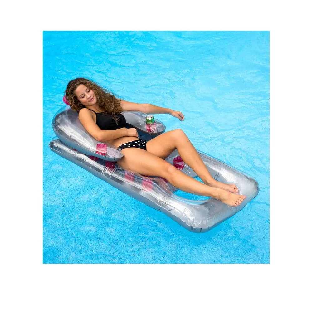 With its classic French design, roll style headrest,0pen leg rest and large contoured back/arm rest with built-in beverage holders this is 1 of the most comfortable loungers on the market today. Its clear, reflective top will help you tan evenly as you relax in the sun. With its classic French design, roll style headrest,0pen leg rest and large contoured back/arm rest with built-in beverage holders this is 1 of the most comfortable loungers on the market today. Its clear, reflective top will help you tan evenly as you relax in the sun. It is available in both Dark Magenta and Dark Blue colors so it looks regal as well as is comfortable. Enjoy fun time even more with this great float.