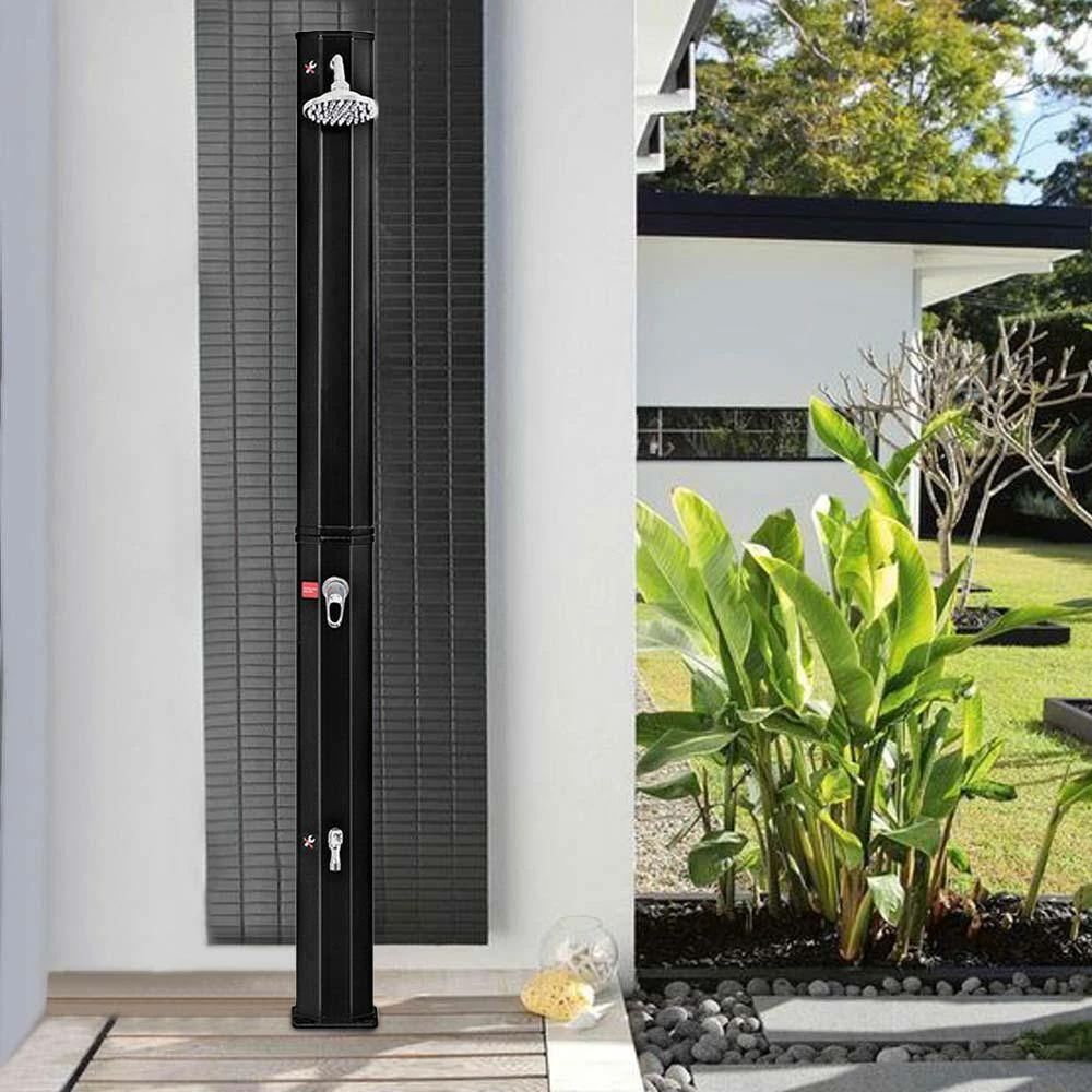 With a concise structure and lightweight, this outdoor solar shower can be set in many places according to your preference. with the temperature-adjustable faucet, it can quickly provide you with warm water and meanwhile avoid scald. Moreover, an additional foot shower improves convenience for you to wash feet or hands. It is a practical tool, can be used in many places according to your preference, such as the small bathroom, garden, yard and so on.