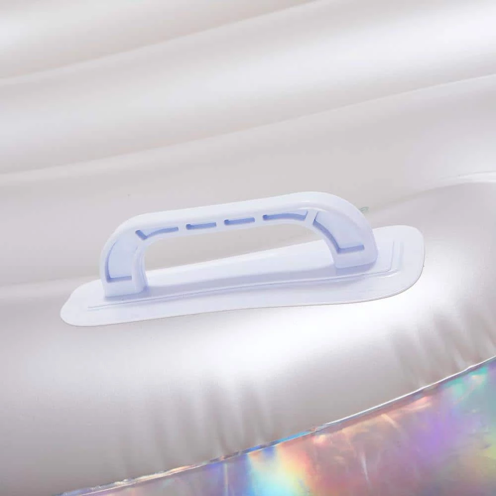 Relax in comfort and style in the warm summer sun on the Summer Waves Holographic Inflatable Seashell Float. With a stylish open seashell design, this holographic pool float is sure to turn heads this summer. This durably constructed float is made with an all-cushioned design, giving swimmers a comfortable ride as they relax in the summer sun. with 2 air chambers, this holographic summer pool float is quick to inflate and deflate for easy to take with you to the pool or fold for storage. This set includes a repair patch to quickly fix any holes that may occur from accidental bumps and scrapes so you can get back out on the water. Take this seashell float to a pool party and lay elegantly on top for a stylish, fun look this summer. Turn heads at the pool, beaches and lakes with the Summer Waves Holographic Inflatable Seashell Pool Float.
