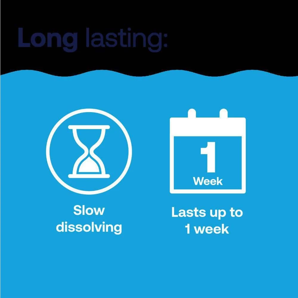 - Tablets are designed to give pool owners the ultimate value – dissolving slowly for longer chlorine life