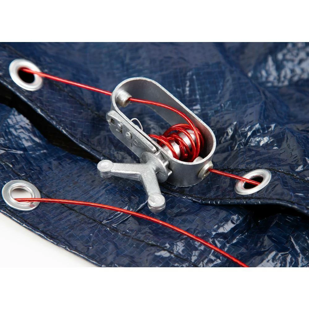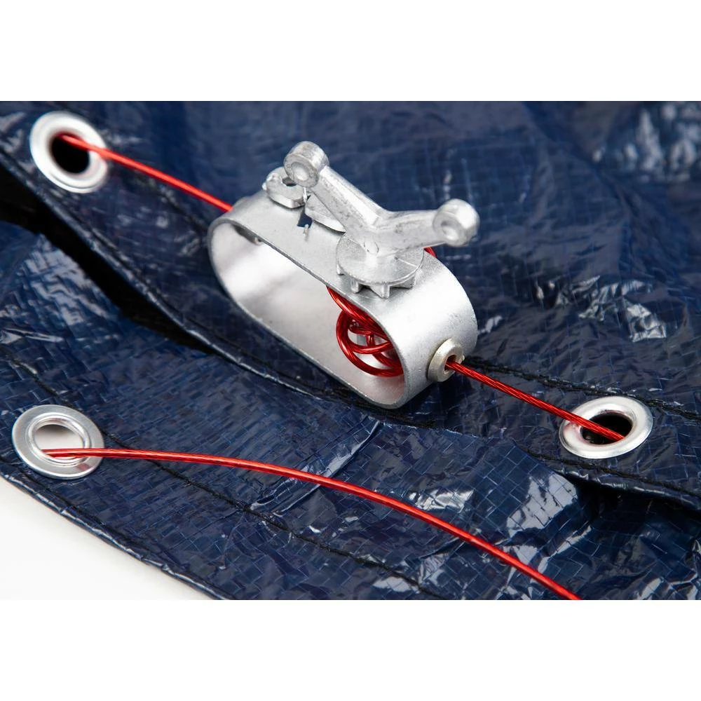 The Blue Wave Bronze grade cover has the strength and durability of covers costing twice as much. Rugged polyethylene scrim and coating means this cover can withstand winter’s worst. Blue Wave covers are U V protected so they will last for years in direct sunlight. The cover’s black underside retards algae growth and heat sealed seams means a crystal clear pool next spring. The big 4 ft. overlap ensures a proper fit for above ground pools unlike covers with 3 ft. overlaps. Blue Wave covers are held secure with a heavy duty cable and winch tightener that is anchored by rip proof metal grommets. Backed by an 8-Year warranty (1-year full rated). This Blue Wave cover comes in a dark navy blue with a black underside.