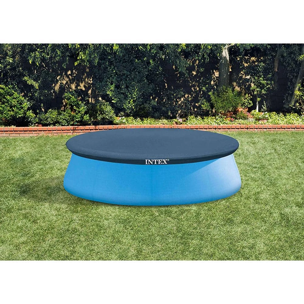 Keep debris from falling into your Easy Set pool with the Intex Easy Set Cover. This convenient cover has a 12 in. overhang for a great fit. Tighten the rope tie to help keep the cover from blowing off. Fits: Easy Set Pools. Includes: Convenient rope tie. Drain holes to prevent water accumulation.