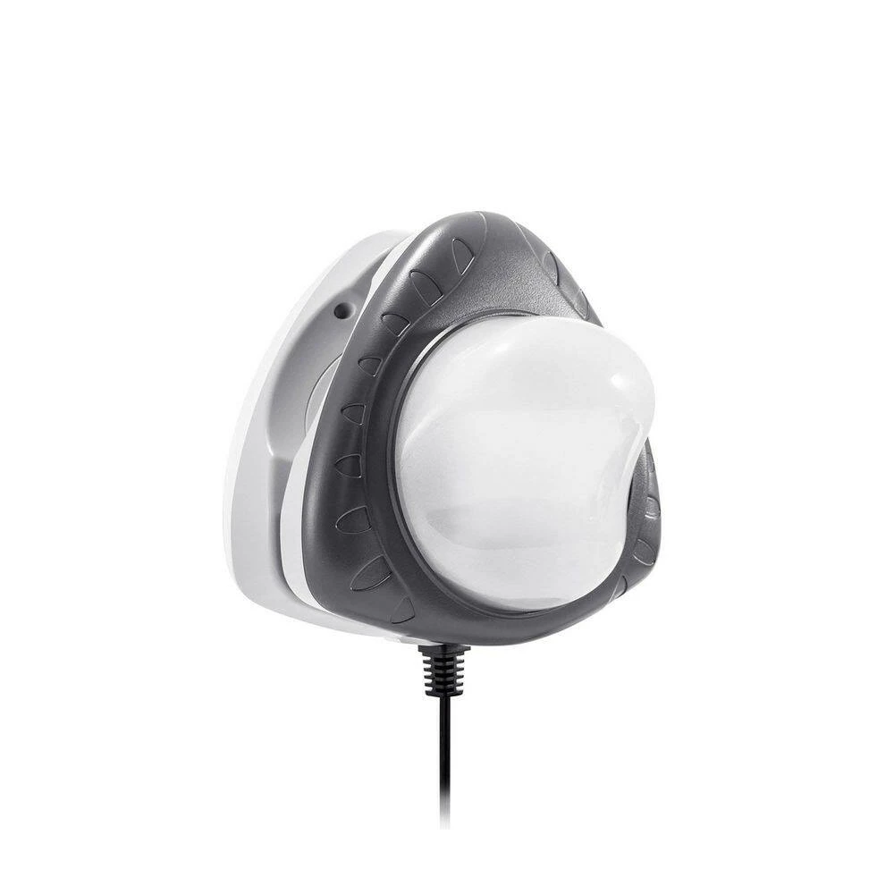 Keep the pool fun going into the evening with this LED above ground pool light by Intex. This above ground pool light illuminates pools up to 24 ft. in size, and can be easily mounted to the side of any soft sided, above ground pool. Just place the light unit inside the pool and the transmitter on the outside pool wall- its magnetism will do the rest. Plus, if the light unit is separated from the transmitter, it will float for easy removal, and the transmitter power source is safe to use near water. Stay safe and enjoy a nighttime swim with this Intex LED light.