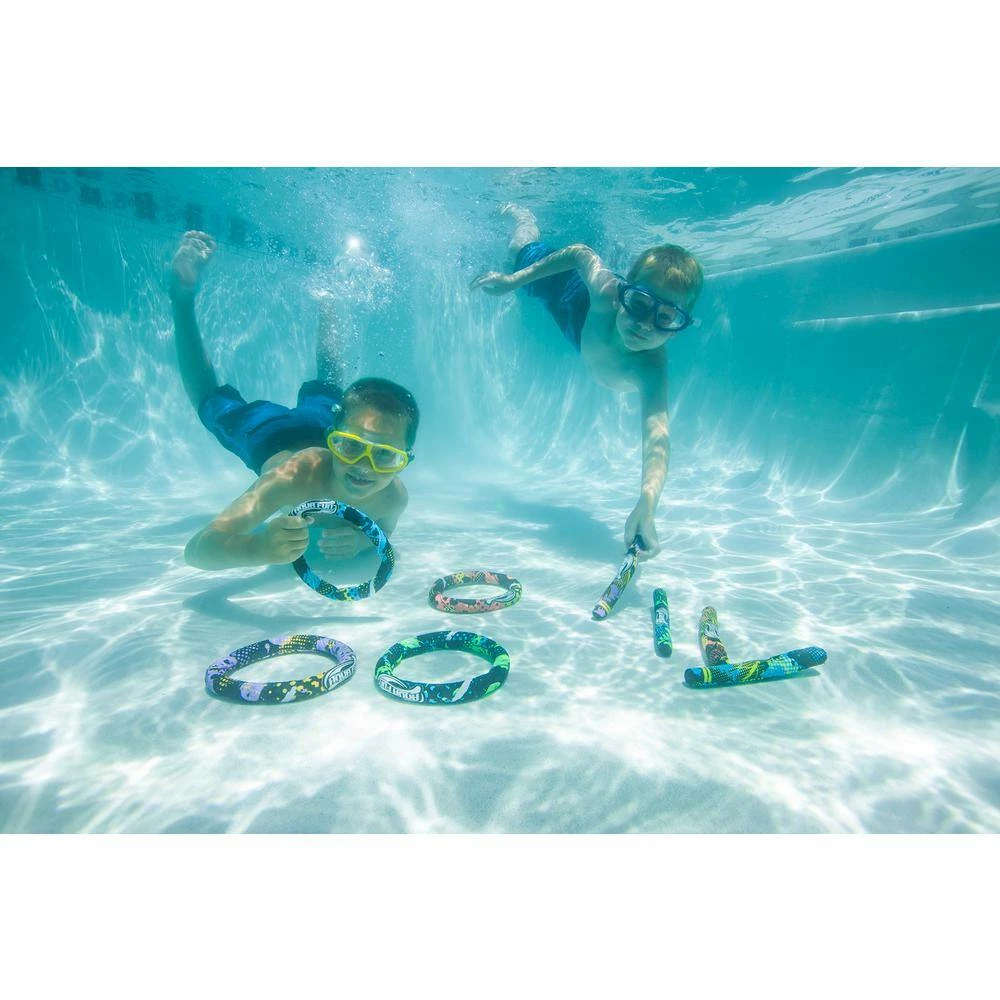 Active Xtreme’s Dive Sticks are soft, flexible, and perfectly weighted for quick submergibility. Made of water-resistant Tricot fabric, each bomb measures approximately 7.75″ tall and lay flat on the pool’s floor for easy pick-up. Recommended for ages 8+