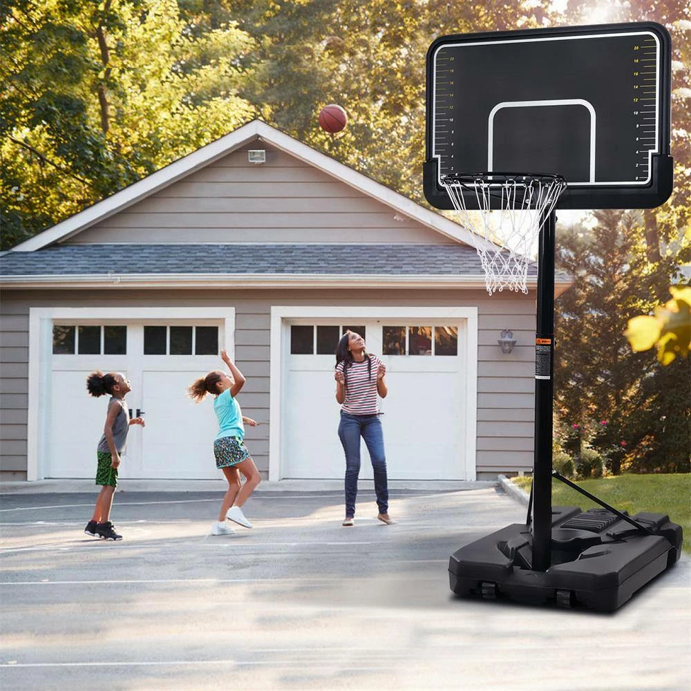 With a clear height scale, you can have a clear reach jumping goal to complete your bounce training. The tripod designed base can be filled with 21 Gal. water or 220 lbs. sand for stability as you practice your shots. While the 2 built-in wheels under the base ensure the portability of the basketball hoop, so you can play indoor or outdoor anytime.