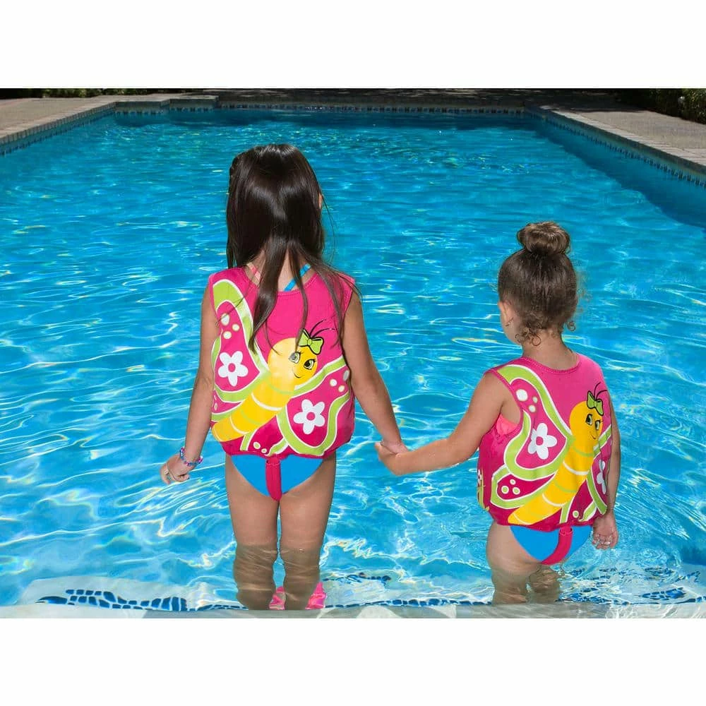For developing skills in intermediate swimmers, Poolmaster’s Butterfly Swim Vest is comfortable and is made of 100% Polyester fabric surrounding a closed-cell foam interior which aids in buoyancy. The beautifully designed vest features an easy-glide zipper with tab-top closure. Removable briefs easily snap on or off as desired. Recommended for ages 1-3 years or weight between 24 – 40 lbs. Swim in confidence, comfort, and style.