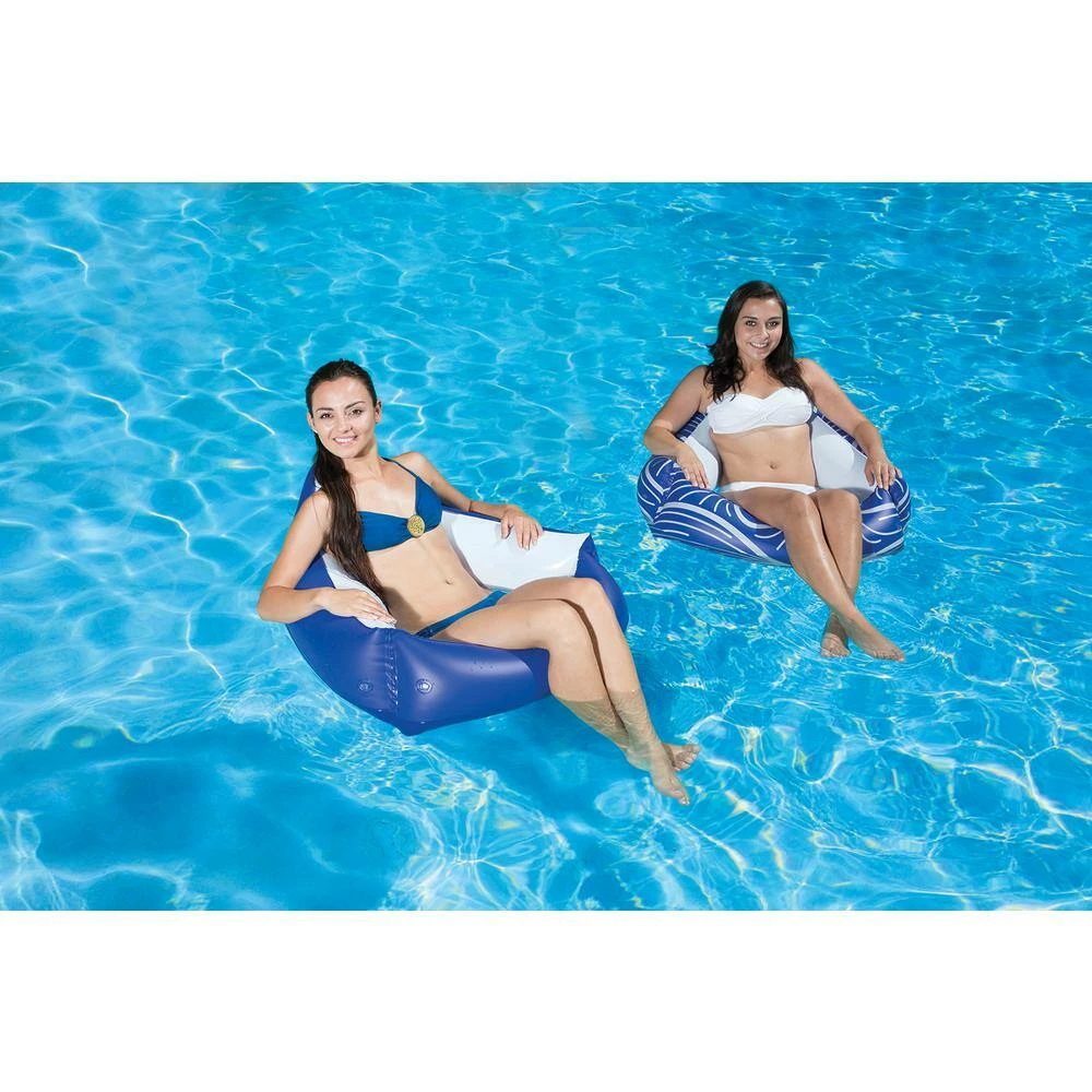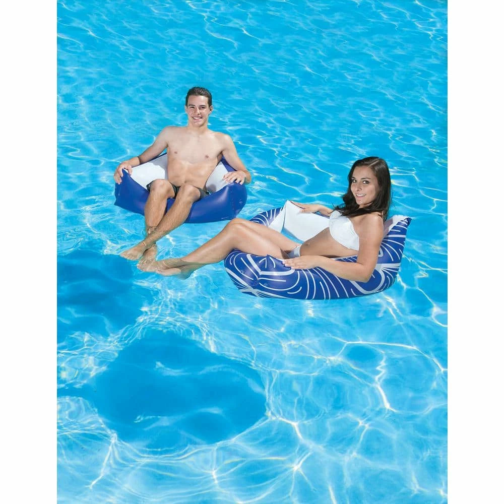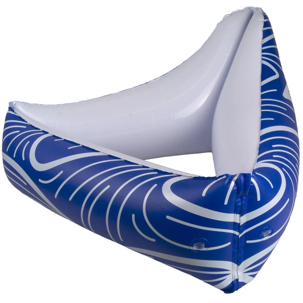 Set of two uniquely-shaped chairs complement each other with coordinating designs. These triangular-shaped chairs keep you sitting upright because of the elevated back support and universal fit of the open seat. Measures approximately 29 in. on all sides, deflated.