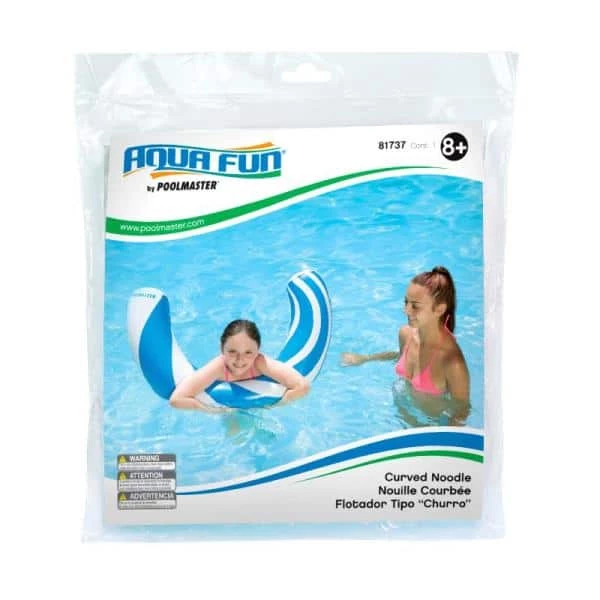 Designed for hanging over and relaxing in the water, the Curved Noodle in its simple blue and white design visually pops off the water. Measuring approximately 3.5 ft. W from side to side, the 6 in. Dia noodle provides the perfect buoyancy to submergibility ratio. Use your imagination for play and lounging.