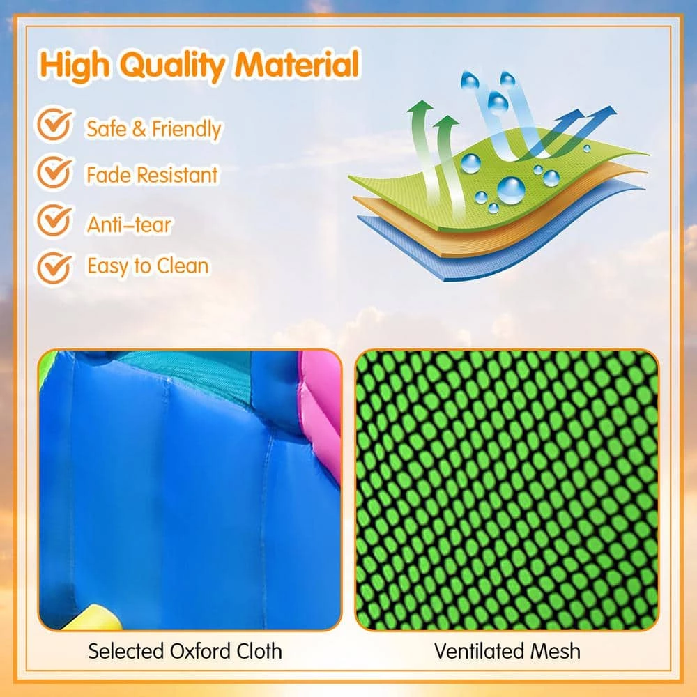 - Friendly and durable material: made of strictly selected and friendly Oxford material, our inflatable bounce castle is wear-resistant and safe for long hours of play, premium sewing techniques allow children to bounce freely without worrying about the bounce castle break, it can support up to 200 lbs. and is suitable for 3 children to play together