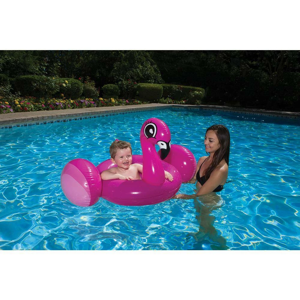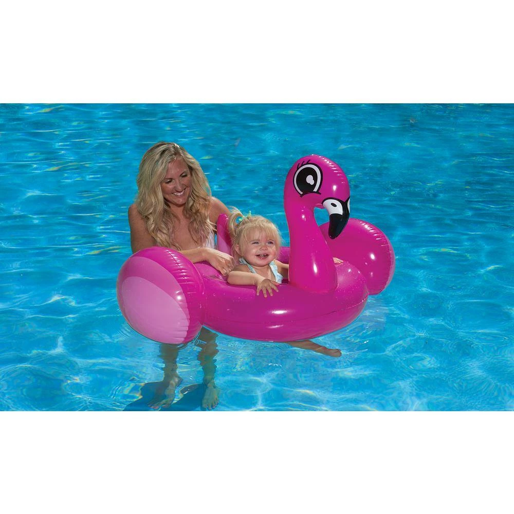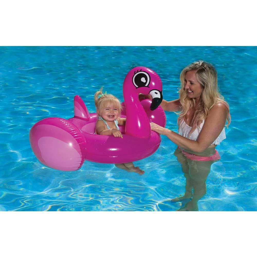 Poolmaster’s Flamingo Baby Rider is chic, trendy, and perfect for debuting your little one’s first water experience. Designed to POP off the water in bright HOT pink, this baby rider features a wide wing base for on-the-water stability and drop seat with ample leg room for sitting comfortably and confidently. Made in 10-Gauge vinyl and recommended for ages 8-24 months.