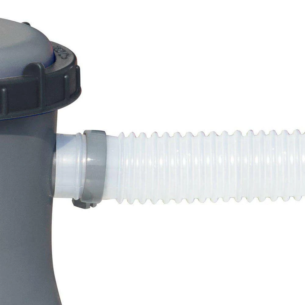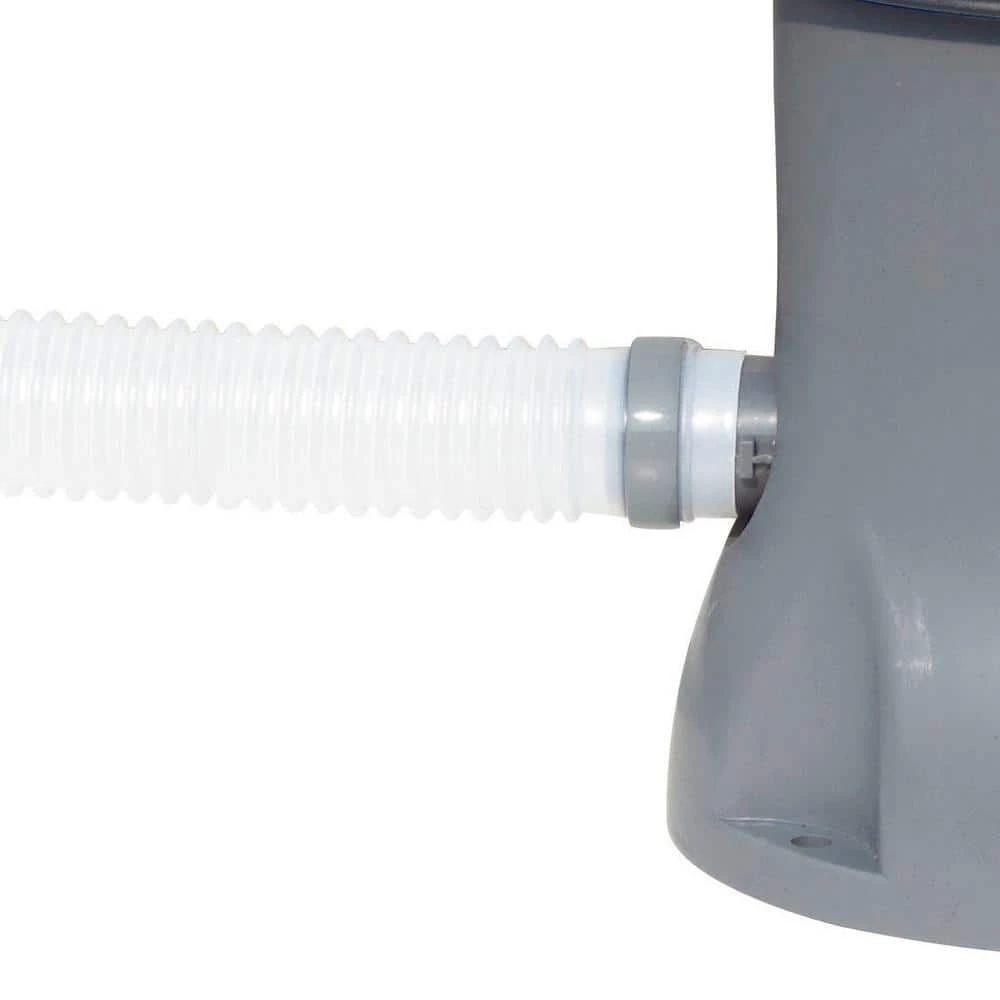 Keep your pool water clean, crystal clear, and hygienic with the help of the Bestway Flow clear 530 GPH Filter Pump for 3800 Gal. Above-Ground Swimming Pool. This filter pump fits most above-ground pools. With a flow rate of 530 GPH and an integrated pool system flow rate of 480 GPH, this pump has the power to filter pools up to 3,800 Gal. in size. It has a GFCI plug and comes with 2 hoses. This filter pump is easy to install and maintain, to ensure year after year endurance. For the long life of your pool and the health of swimmers, take care of your water with the Bestway Flow Clear 530 GPH Above-Ground 3800 Gal. Swimming Pool Filter Pump.