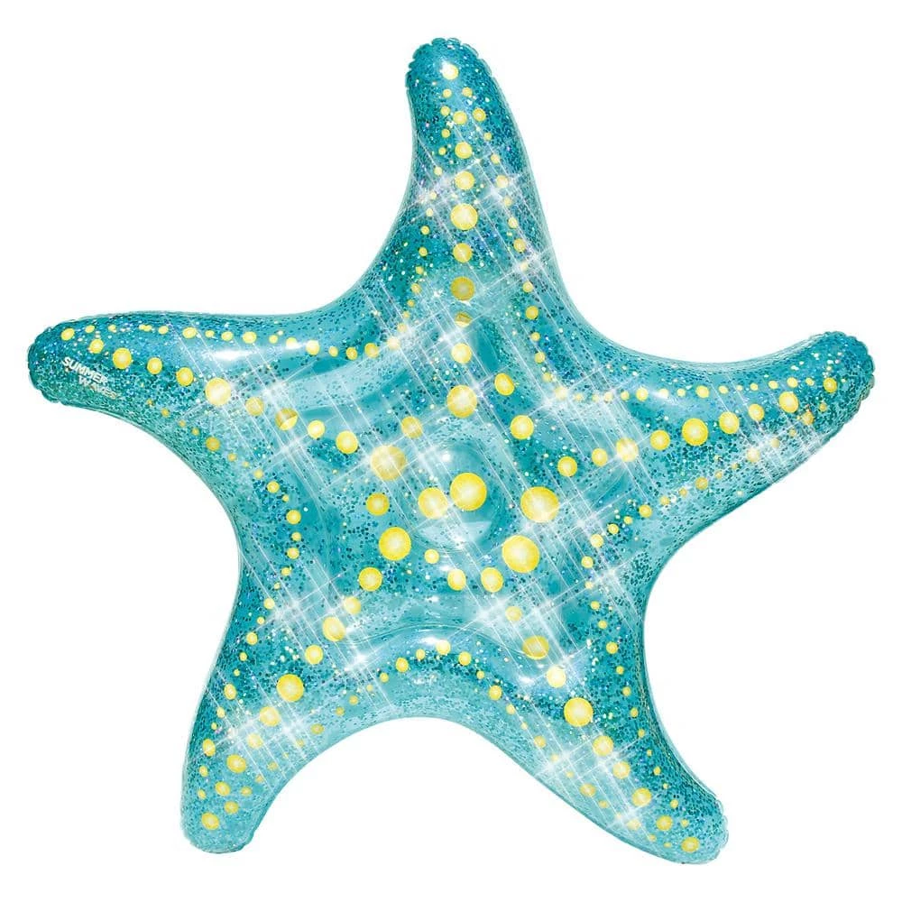 The Summer Waves Glitter Sparkles Starfish Float will have you sailing across the water in dazzling style. This durable PVC pool float is filled with our Sparkle-N-Shine moving glitter confetti to add shimmering excitement to those sunny days. Just fill with air and you will be the hit of the party. Enjoy lounging on this float at the pool, lake, beach or wherever your summer adventures take you.