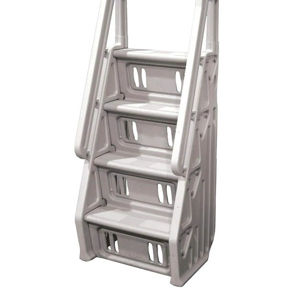- Step-in pool ladder with double handrails for easy, safe entry and exit into an above-ground pool