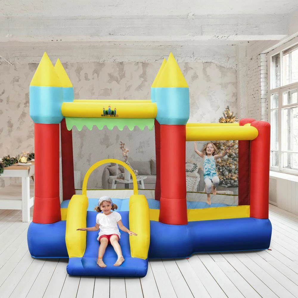 Give the perfect bouncer house gift to color your kids spare time. It features dual jumping areas, of which large space can accommodate 2 kids at the same time and let them lie down, freely jump and laugh. Wide slide, crawl tunnel, 100 ocean balls and basketball bring much more enjoyment further. It is worth mentioning that the air pump is included that is intended to help inflate the basketball in-minutes. The inflation of bouncer is super easy as well, by means of a 380-Watt or 480-Watt blower. Safety matters a lot, and that’s why it adopts ultra-thick 420D plus 840D oxford cloth. ASTM certification frees you from the worry about using reliability. Take this bouncer home and have a enjoyable time.