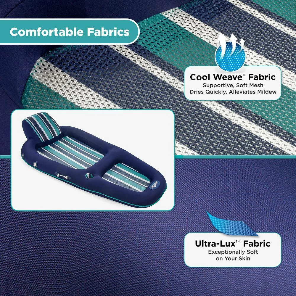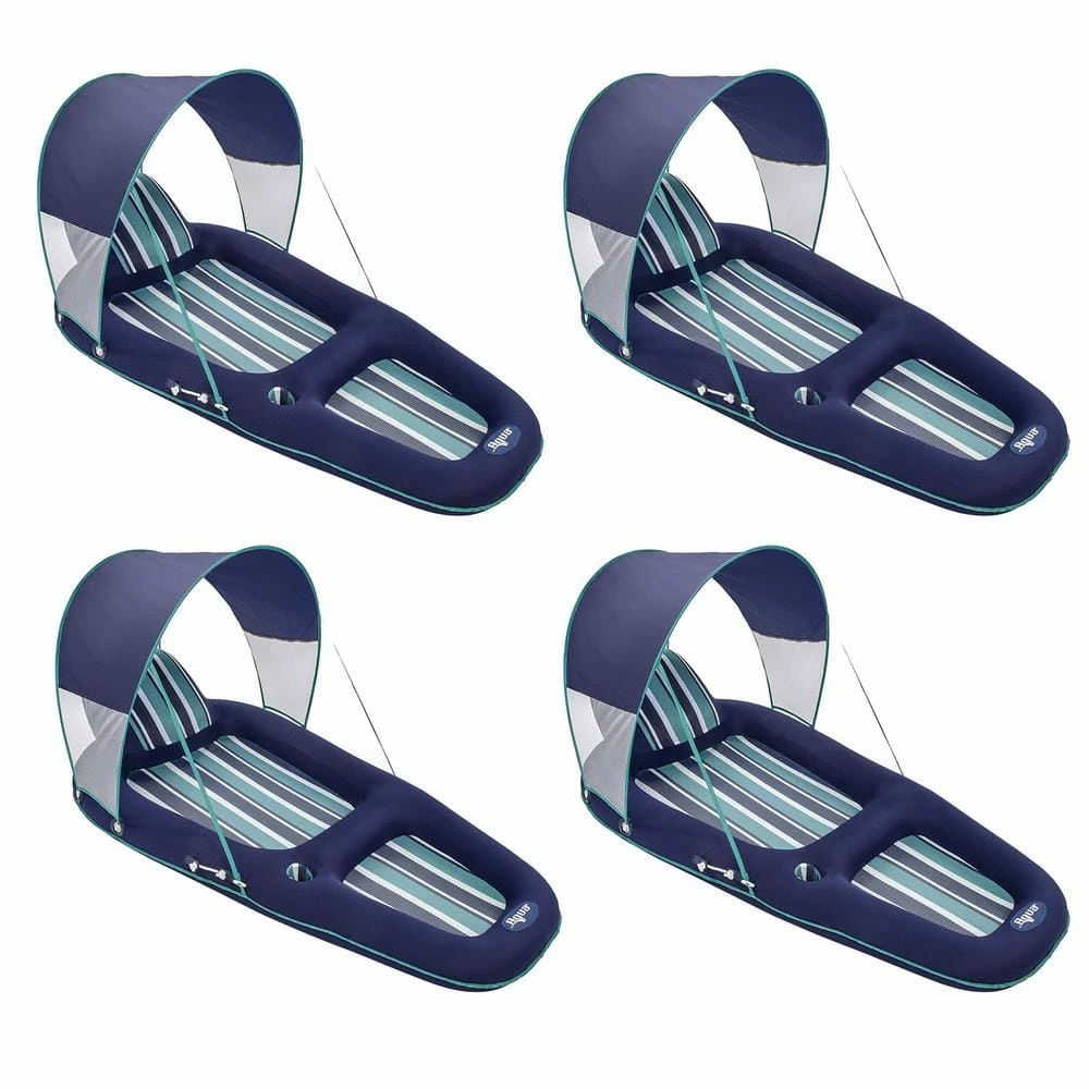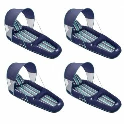 Experience ultimate relaxation in the water with this 4-pack of these extra-large pool float loungers This lounger is made with incredible comfort thanks to a cushioned, ergonomic backrest along with a headrest and footrest. The high quality, soft fabric mesh covers the wire-free water lounge chair and creates a supportive, cooling seat on the water. This pool lounger also has exceptional portability with 2 carry handles built-into the side. Additionally, there’s an over-sized, detachable sunshade canopy and side cup holders for maximum relaxation on the water. When inflating the lounger, you can choose from the small or large valve openings. That way you have several options for how you want to inflate the pool float. The float has a capacity of 275 lbs., making it a great float for adults to relax on the water.