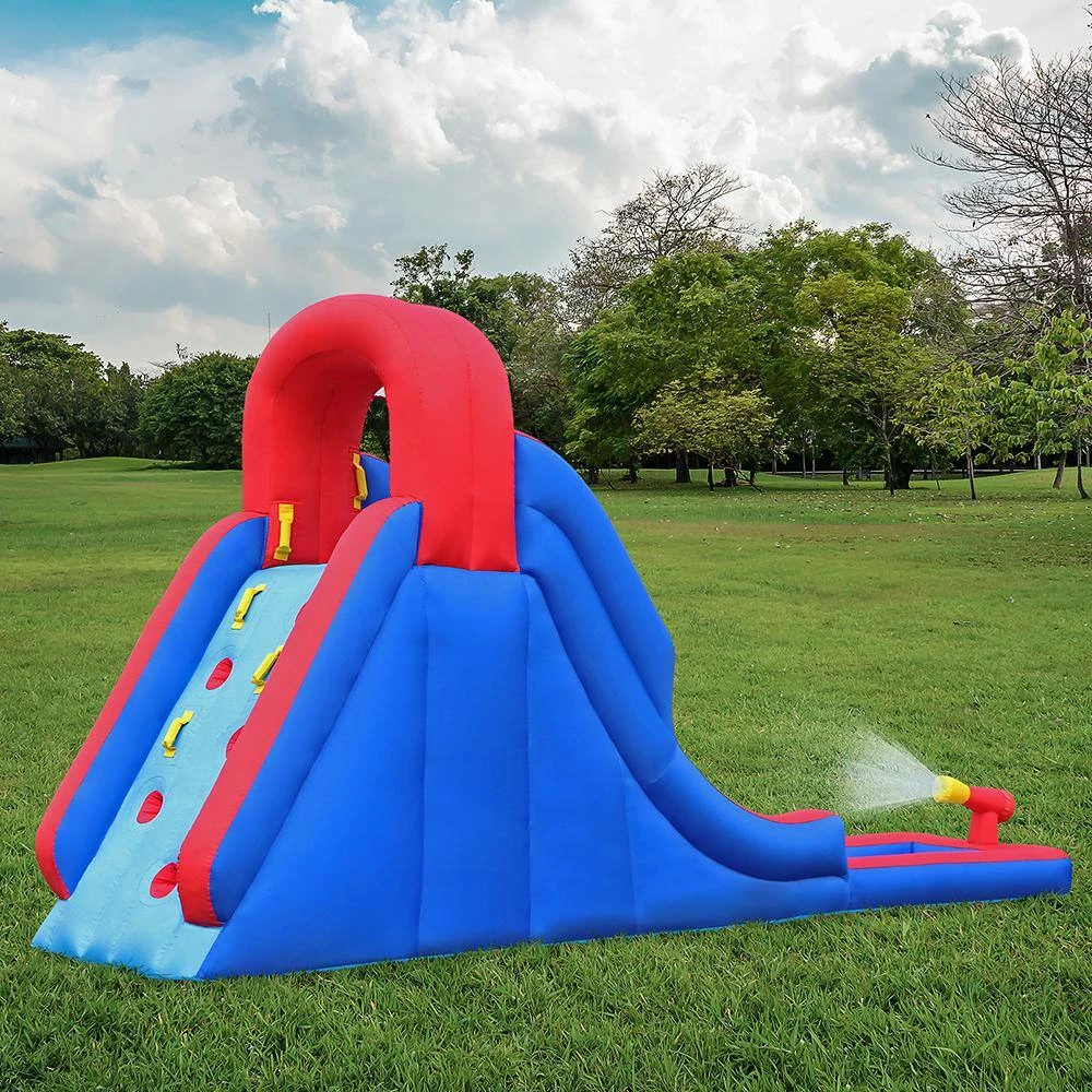 - 3 Features Include – Climbing wall, water slide & splash pool