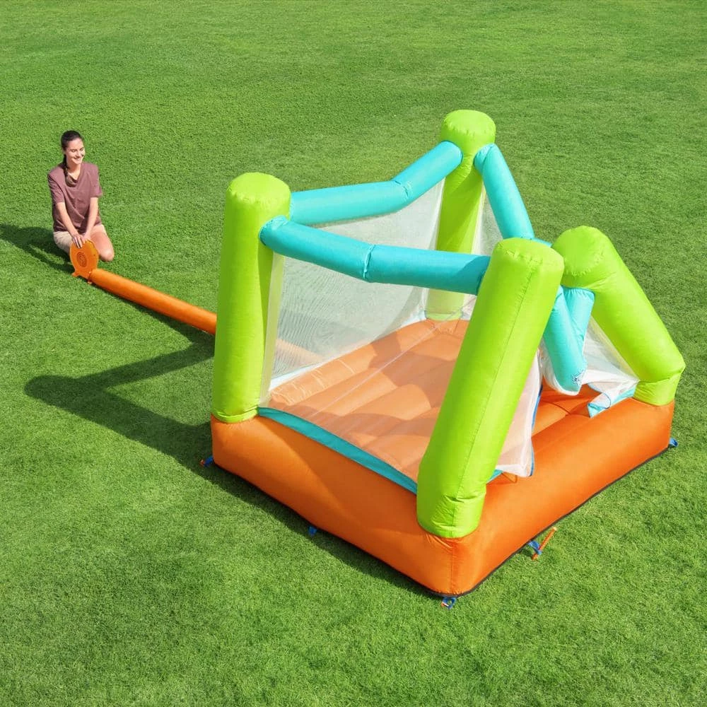Slide in and out of backyard bouncing fun with the Bestway Jump And Soar Backyard Inflatable Bouncer Bounce House. This lightweight inflatable jumper playset is perfect for backyard bouncing fun. Jump and tumble into big bouncing fun before sliding out to do it all over again. Providing peace of mind to parents, the see-through mesh walls allow parents to view and supervise jumpers, ensuring safety and avoiding injury. Recommended for ages 3 and above, this playset will be a hit with your kids. Setting up this bounce house will be easy, this set comes with a blower to inflate the bouncer in less than 2 minutes. Designed for both indoors and outdoors, your kids will have a fun and safe place to explore and play wherever and whenever. Let your kids develop their gross motor skills and stimulate their imaginations. For extra security, this bouncer has an opening for extry and exit so parents and kids can easily access in and out. Give your kids a cool and memorable bounce house experience with the Bestway Jump And Soar Backyard Inflatable Bouncer Bounce House.