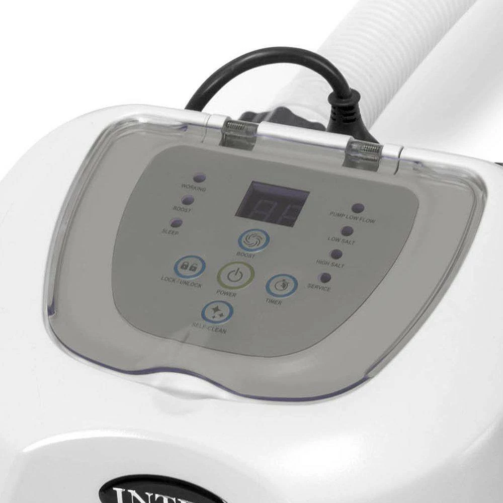 Keep your above ground pool water clean, soft and refreshing with the Intex Krystal Clear Saltwater System. Its unique 2 stage technology uses an E.C.O. (electrocatalytic oxidation) process in which water molecules are split into highly powerful oxidants to destroy organic contaminants, such as bacteria and algae. Next, the amount of natural chlorine generated by this saltwater system is greatly reduced, which results is clean water without the potential harsh side effects of packaged pool chemicals. The Intex Krystal Clear Saltwater System requires a filter pump with a flow rate between 700 3,000 GPH and is for use with a maximum pool size of 7,000 Gal.