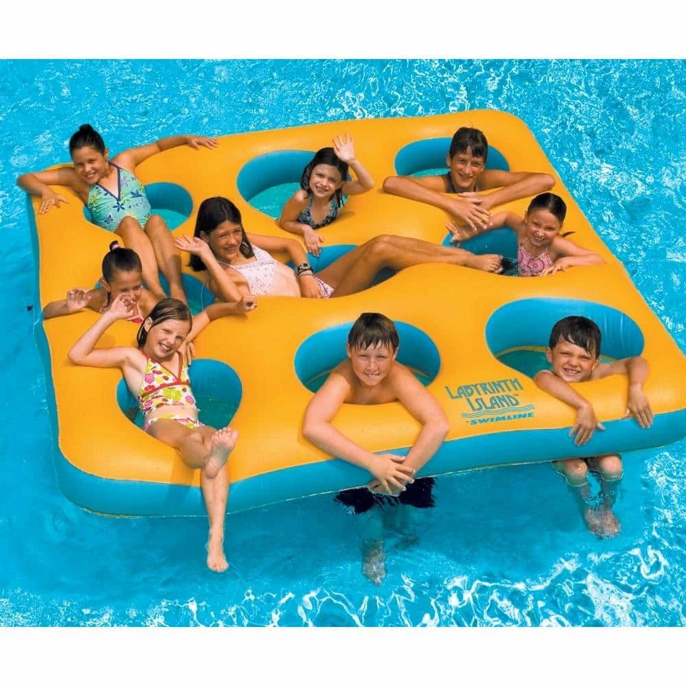 Your kids and their friends will have a blast on the Labyrinth Island. Large enough for nine, your kids will swim the day away coming up from underwater and onto the island. Heavy gauge PVC will hold up to rough play. Add a new dimension to the pool this summer with Labyrinth Island.