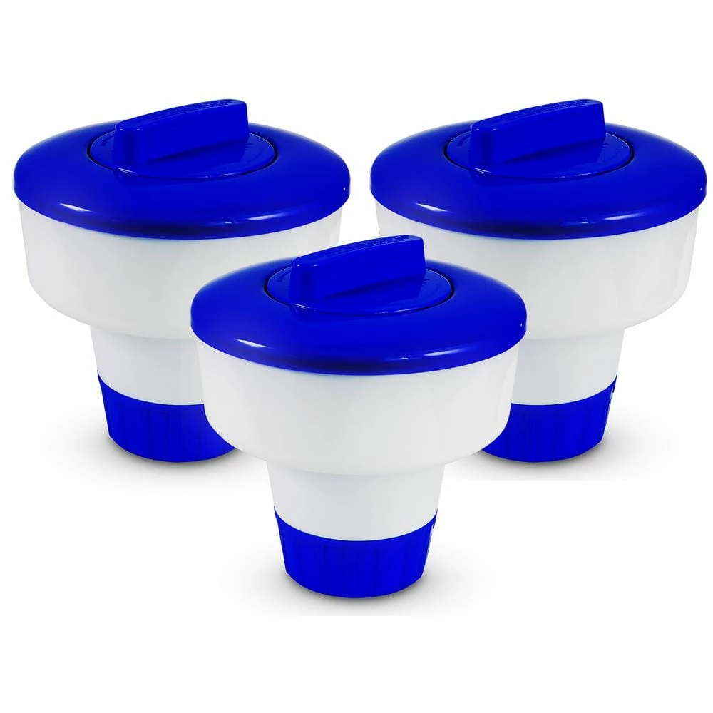 - Quick and easy- floating chemical dispenser for pool hold up to 3 in. bromine tablet, has a lockable cap and adjustable rings for complete control