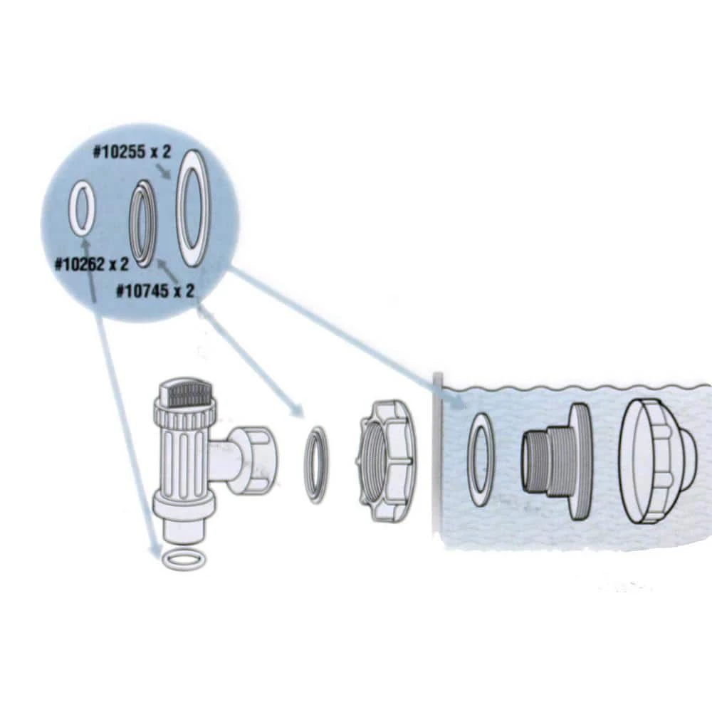 - Each unit includes: two 1-1/2 in. O-rings (10262), two 2 1/4 in. step washers (10745), two 3-7/8 in. flat gaskets (10255)