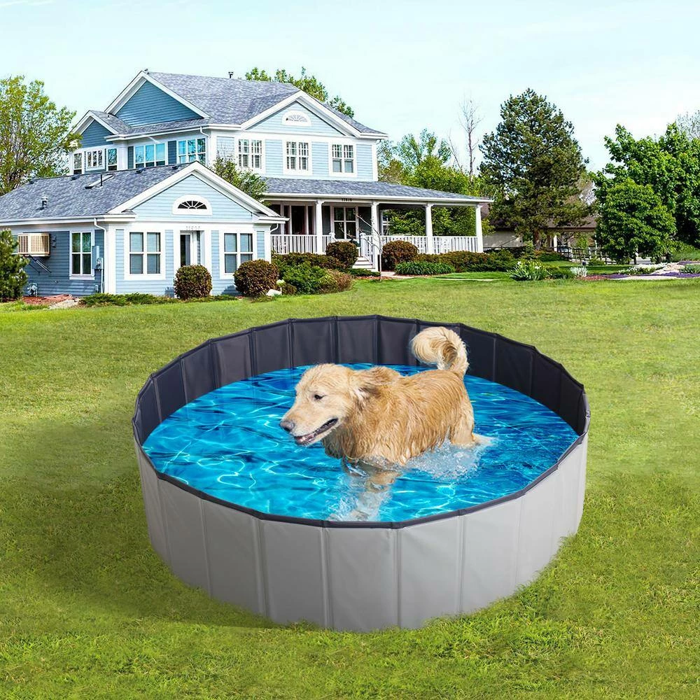 It is suitable for children, cats, dogs, ducks and so on. This swimming pool will be perfectly used indoors and outdoors. Come on. And your pet will not be disappointed with this high-quality pet pool. To ensure normal use, please place the pool on a flat and smooth ground without sharp objects. This dog swimming pool can be used well in daily life, without water leakage and collapse, and is durable. In addition, the non-slip bottom of the swimming pool can prevent your pet/child from slipping when splashing water in the swimming pool.