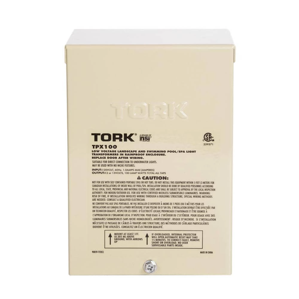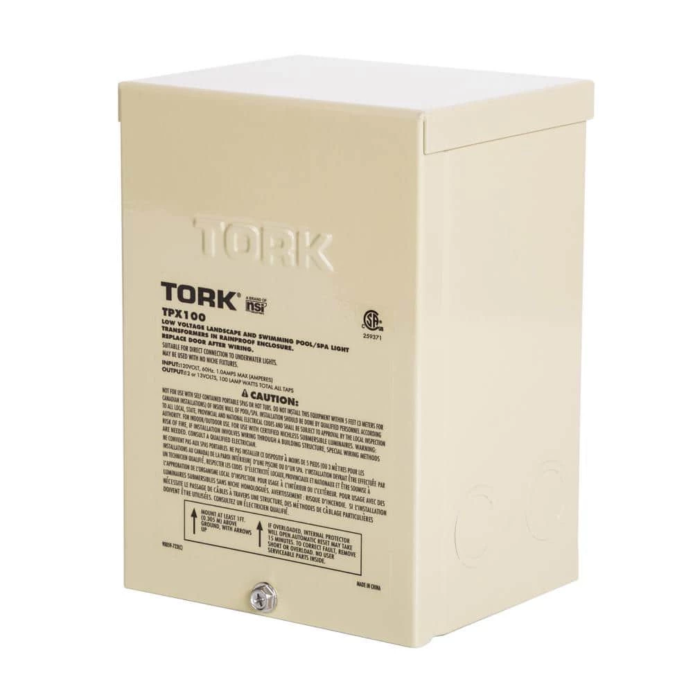 Transform any indoor and outdoor location with the TORK Low Voltage 100-Watt Safety Transformer. This transformer is designed for the safe operation of 12-Volt light loads to underwater pool and spa lighting, garden lights, decorative lighting or fountains. Built-in circuit protection will disconnect power in case of overload. This transformer comes with convenient high and low-voltage wiring compartments along with built-in mounting brackets for easy installation. This product features a ground shield between primary and secondary windings and an automatic overload reset. Ideal for pool, spa, fountain and submersible lighting luminaries, this set is ready for multiple usages. Stainless steel housing will stand up to any outdoor or underwater conditions. All TPX safety transformers feature an enhanced core design for longer life so you get your money’s worth. Power your outdoor landscape lighting with the Low Voltage 100-Watt Safety Transformer for Indoor and Outdoor Pools and Decorative Lighting from TORK.