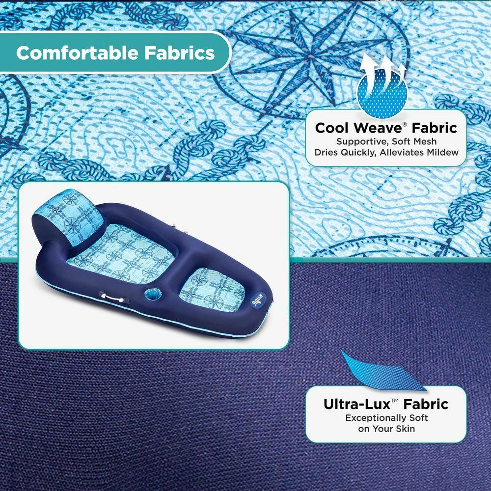 - High quality, soft fabric mesh covers the wire-free water lounge chair and creates a supportive, cooling seat on the water