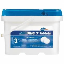 Pool Time maxblue 3 in. Tablets are a multi-functional 6-in-1 chlorinating tablet that kills algae and bacteria for a clean swim ready pool. They also soften the pool water and protect the pool from staining and the equipment from scale formation. The built-in stabilizer protects chlorine from sunlight burn-off so the chlorine lasts longer.