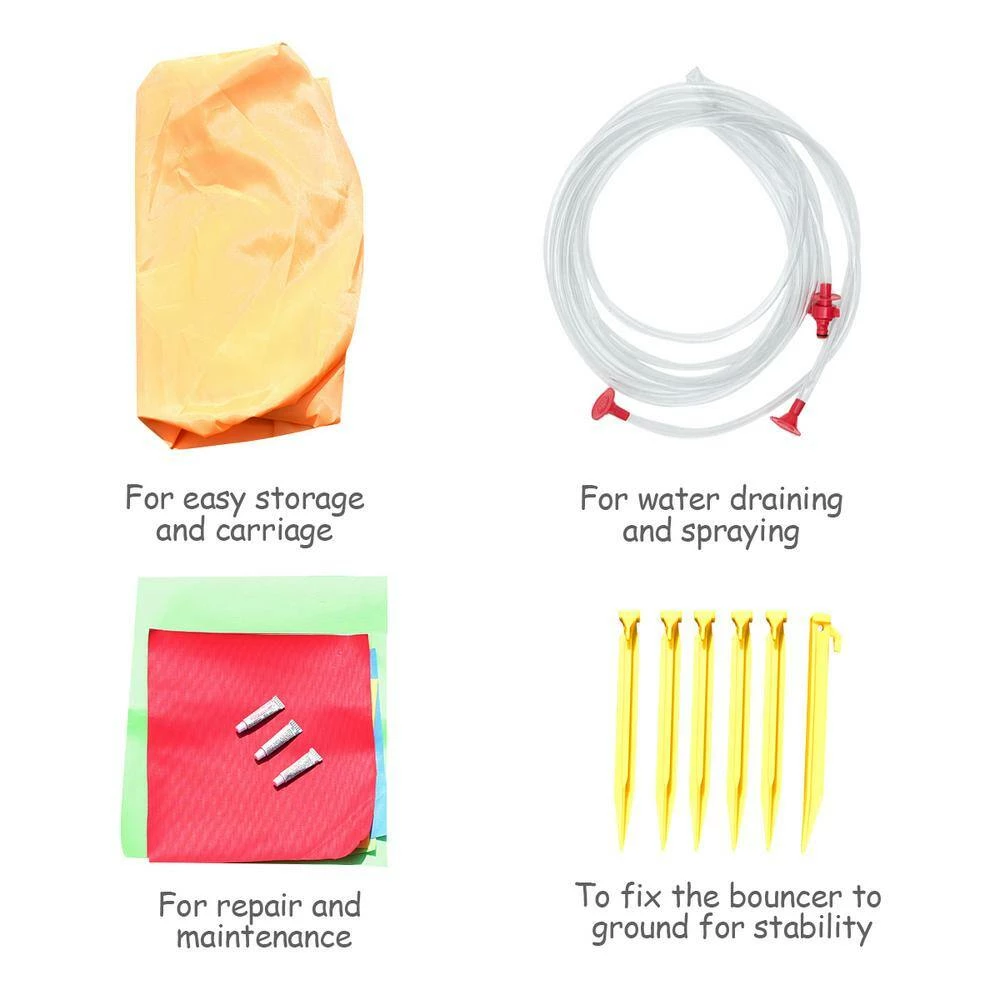 - Package includes: 1 x inflatable water slide 1 x water hose 1 x repair kit 1 x Oxford carrying bag 1 x instruction