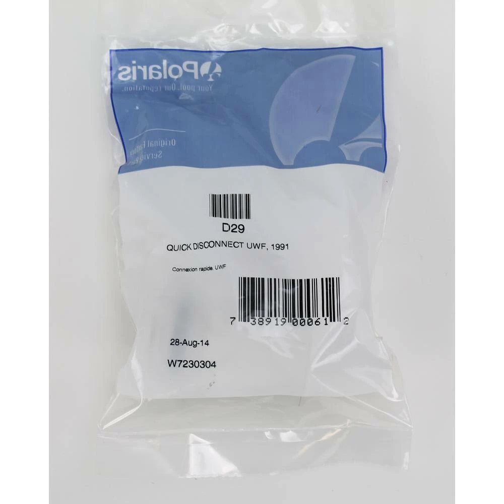 We are an experienced Polaris dealer. The Polaris D29 Universal Wall Fitting Quick Disconnect fits the Polaris 280 and 380 automatic pool cleaners. This is a factory original Polaris replacement part. Does not come with UWF or Pressure relief valve. 1 Buy equals 2 Disconnects.