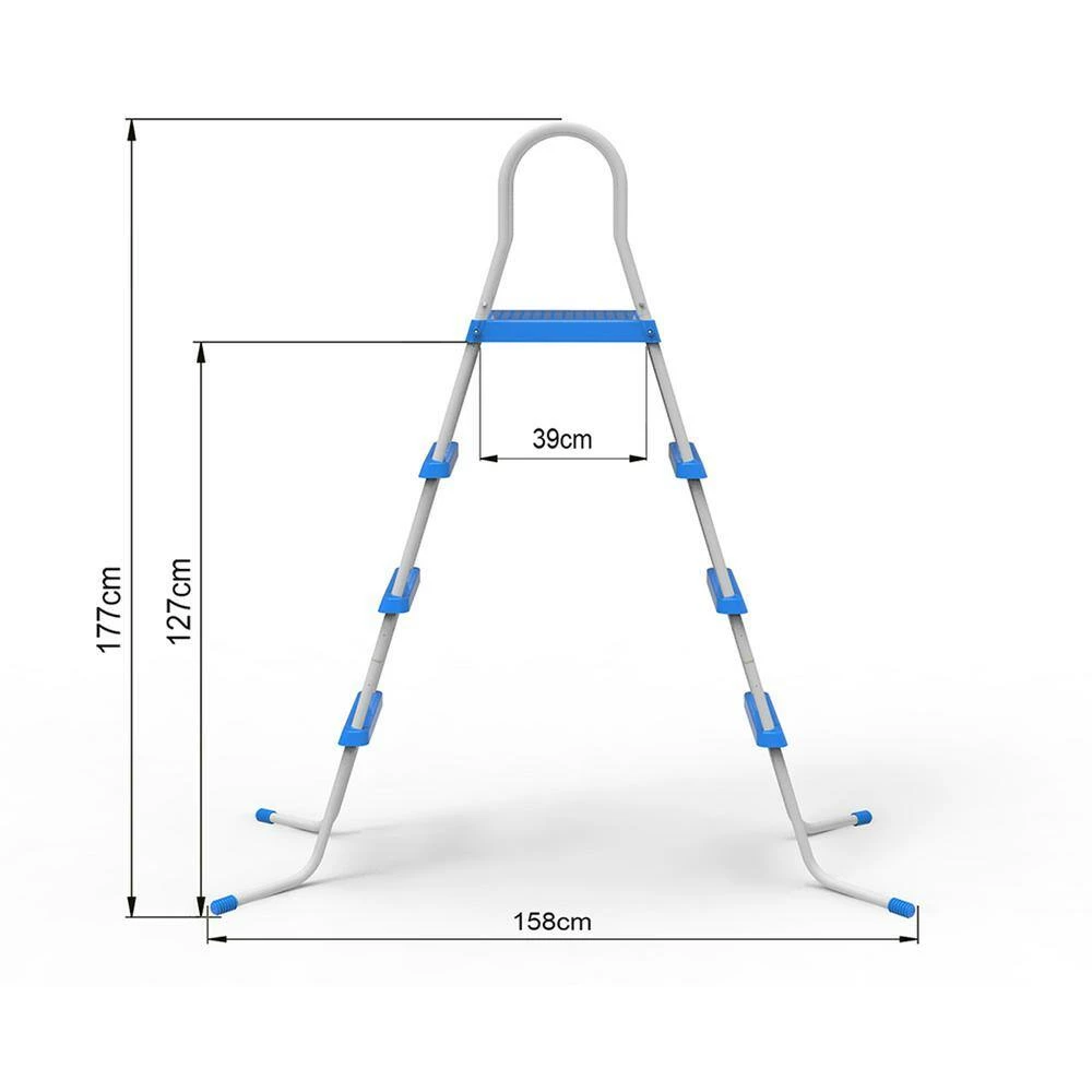 The JLeisure 48 in. 3-Step Swimming Pool Ladder is the best choice for your above-ground swimming pool. This ladder is a practical, as well as attractive, addition to your pool set. Made especially with above ground pools in mind, this pool ladder is made of a heavy-duty, rust-resistant galvanized metal frame and durable plastic steps. The steps have a slip-resistant surface designed to handle wet feet. The arm rails and top step make it safe and easy to turn around while getting in or out of the pool. It also features a convenient platform at the top of the ladder to make getting in and out of the pool much easier. Assembly is easy with this ladder as the pieces all connect. All in all, assembly takes less than 10-minutes. For an attractive and safe addition to your above ground pool, get the JLeisure 48 in. Above Ground Swimming Pool Ladder.