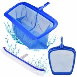 This multi-functional pool maintenance kit is a good choice for keeping your pool clean and looking good. This Mainstays 3PC Pool Kit includes basic items that you need for regular upkeep: a plastic leaf rake, a plastic leaf skimmer with blue puncture PP net and a 18″ wall brush with PP bristle. It is designed to help all pool types, especially above ground pool. From cleaning interior walls to scooping up leaves, insects, and debris, this kit will make it easier to keep your pool sparkling clean and ready to use. Product dimensions: Wall brush : 17.5in x 4.7in x 4.4in (44.5cm x 12cm x 11.3cm); Leaf skimmer : 12.2in x 18.3in x 2in (31cm x 46.5cm x 5cm); Leaf rake : 19in x 13in x 13.1in (48.5cm x 33.2cm x 33.5cm) Product weight : 1.46lb(0.66kg) Product color : Blue, White Product material : PP,aluminium Package dimensions : 18.1in x 5.1in x20.7in (46cm x 13cm x52.5cm)