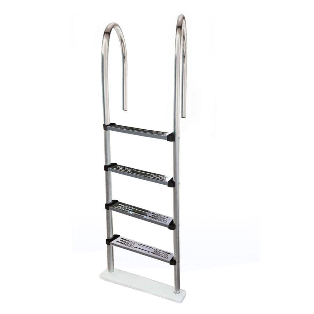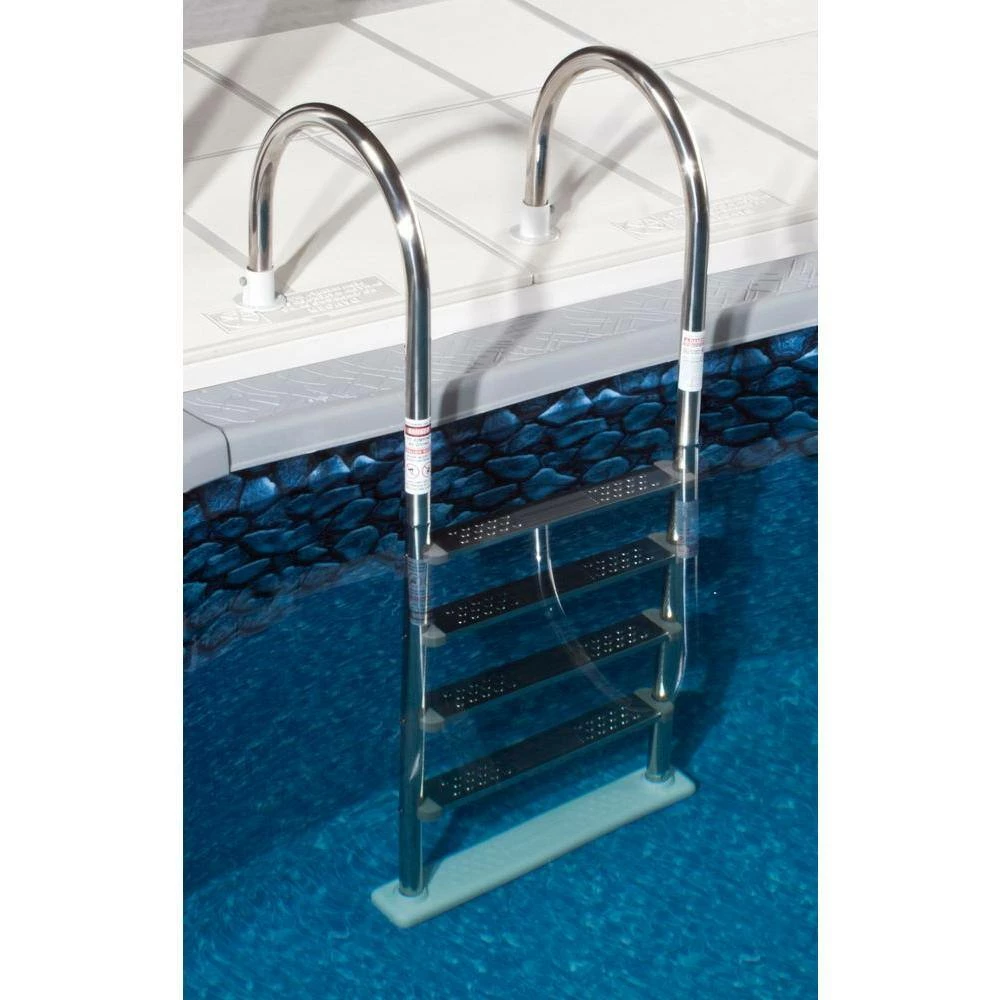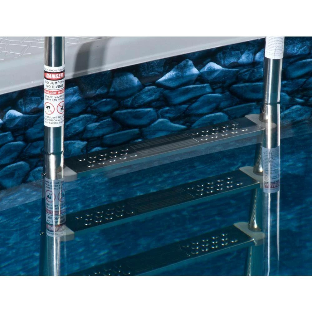 The Premium Stainless Steel In-pool Ladder brings the quality and strength of an in-ground ladder to your above ground pool. Make exiting and entering your pool easier than ever before. This Premium model features stainless steel steps that will not fade, crack or break. Our premium model is 24 in. wide with extra deep treads for sure footing. The ladder is designed to fit up to 54 in. deep pools. The base of the ladder pivots to conform to sloping bottoms for super safe contact. Comes with aluminum deck anchors for secure deck mounting. 1-Year Warranty.