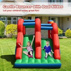 Fabric Inflatable Bounce Castle Dual Slides Jumping Bouncer with Climbing Wall by Costway