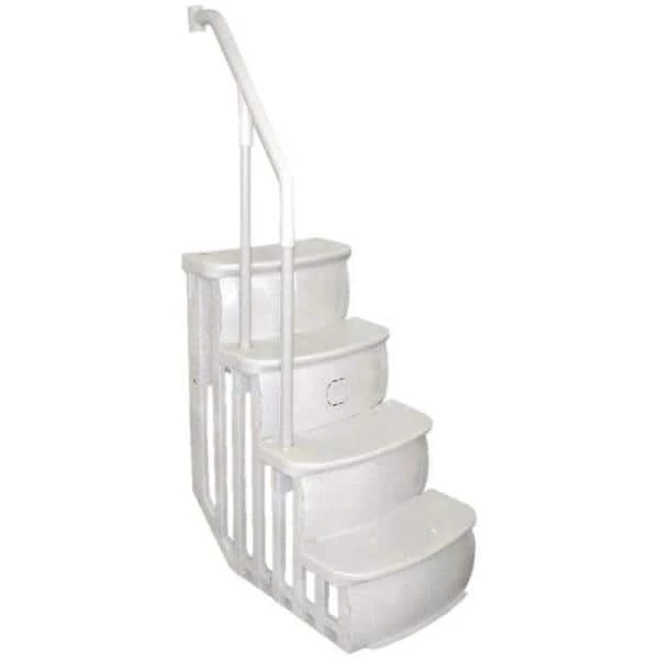 The Smart Step System is an innovative and comfortable entry and exit for the above-ground pool. Specially designed for smaller pools, the inside 24 in. W step provides ample room for a smooth transition while maximizing the swim area. On the outside of the pool, a heavy-duty structural grade ladder offers solid footing and a swing up and lift-and-lock safety feature. The flow-through design allows for improved water circulation in preventing algae. Features a no-swim zone and flow-thru step design. The superior strength-to-weight performance, stability and easy assembly make this combo the leader among the above-ground swimming pool step systems. Your smart step and ladder systems can be connected directly to your deck. This Smart Step system has been paired with a Smart Choice ladder to maximize easy entry and exit options for your pool.