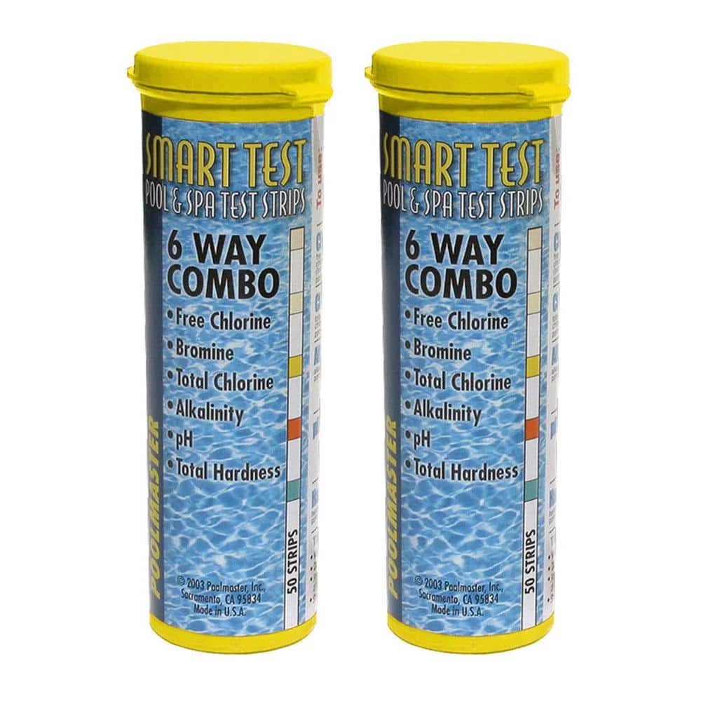 For use in maintaining your pool/spa’s proper water chemistry, these strips are easy to use and read. Simply dip and read for instant results. Color indicators on the strips react to your water’s chemistry. Match the color indicator on your strip with the color indicator chart for comparison. Analyzes 6 chemical factors: Free Chlorine, Bromine, Alkalinity, pH, Total Chlorine and Total Hardness. 50 Strips per kit.
